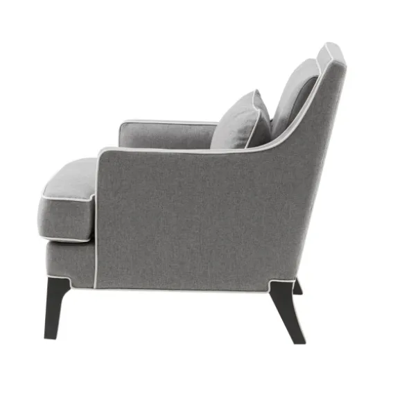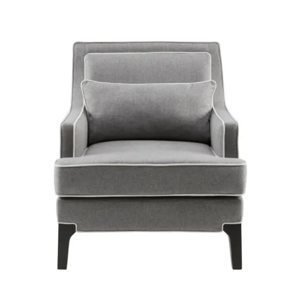 Kick Back And Relax In Our Comfortable Gray And Ivory Trim Upholstered Armchair. You’Ll Love Lounging And Reading Your Favorite Book In This Stunning Armchair. Chair Measures 29.15L X 33.85W X 32.85H In.; Seat Measures 17.5H In.Crafted Of Solid Wood, Plywood, And Polyesterlegs Crafted Of Birch Wood; Arms Crafted Of Solid Wood And Plywoodupholstered In A 100% Polyester Gray Fabricback Fill Material Crafted Of 90% Polyurethane Foam And 10% Polyester Fiberblack Noir Leg Finishupholstered Seat And Backrest With In Gray Fabric With Ivory Weltingremovable Seat Cushion And Back Support Pillowseat Cushion Is Not Reversibleweight: 37.5 Lbs.Weight Capacity: 300 Lbs.Assembly Requirednot Intended For Commercial Usecare: Spot Clean Only.This Item Is Available At Kirklands.Com Only, Not Available In Stores. Please Note: This Item Cannot Be Shipped To Apo/Fpo Addresses.