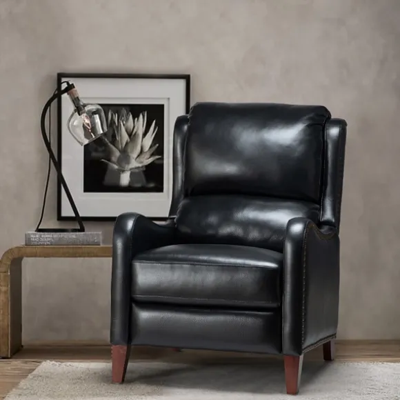 Lounge In A Smart, Sleek Manner With Our Arturo Black Leather Wingback Recliner. The Push Back Style Of This Chair Allows You To Get The Comfort Of A Recliner With The Look Of A Cozy, Classic Armchair. Recliner Measures 37L X 28.2W X 42H In.; Seat Height: 20 In.Crafted With A Solid Hardwood Frameupholstered In A Leather Blend Fabric And Filled With High Density Foamblack Upholstery Finish With Brown Legsfeatures A Modern Wingback, Push Recliner Designaccented With A Nailhead Trimreclines Up To 140 Degreesweight Capacity: 250 Lbs.Assembly Requirednot Intended For Commercial Usecare: Spot Clean Only. Not Safe For Outdoor Use.This Item Is Available At Kirklands.Com Only, Not Available In Stores. Please Note: This Item Cannot Be Shipped To Apo/Fpo Addresses.