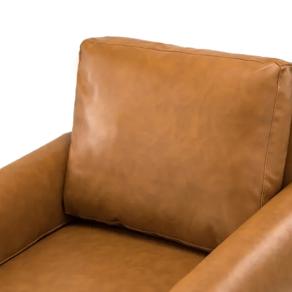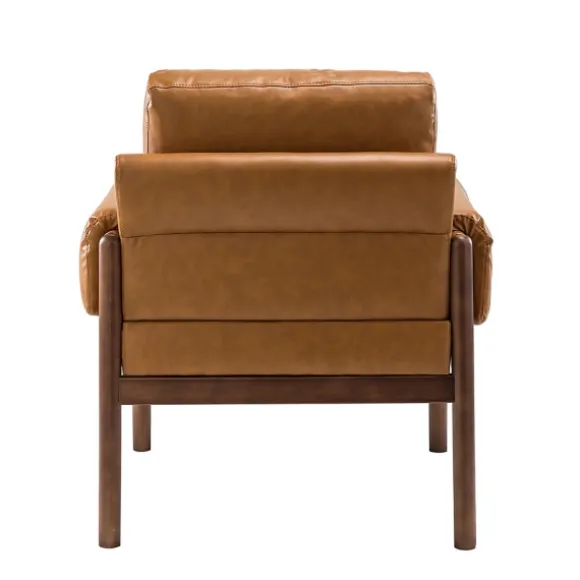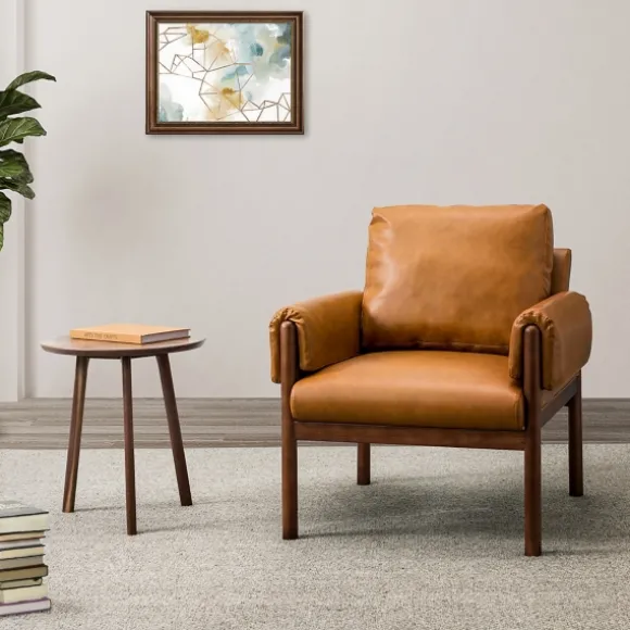 Sit Back And Relax In Style With This Cognac Faux Leather And Wood Accent Chair. With Its Ultra Comfortable Design, It’S Perfect For Curling Up With A Good Book! Plus, Its Leather-Like Finish And Sophisticated Look Make It An Ideal Chair For Your Den Or Study! Chair Measures 30L X 29.5W X 28.2H In.; Seat Measures 18H In.Crafted With A Wooden Framehigh-Density Foam And Cotton Fillupholstered In A Tan, Leather-Like Polyurethane Fabricmahogany Leg Finisharmchair Designsinuous Springs In Seat Provide Comfort And Supportcushions Are Removableweight Capacity: 220 Lbs.Some Assembly Requirednot Intended For Commercial Usecare: Dust With A Soft, Dry Cloth.This Item Is Available At Kirklands.Com Only, Not Available In Stores. Please Note: This Item Cannot Be Shipped To Apo/Fpo Addresses.