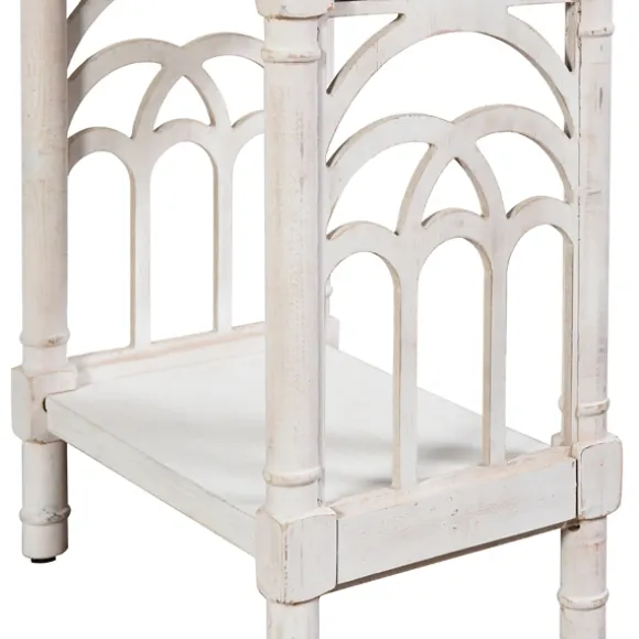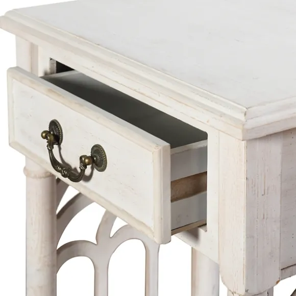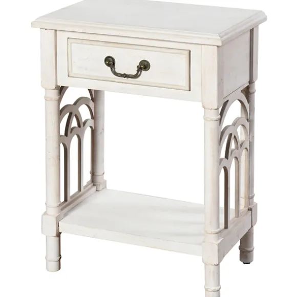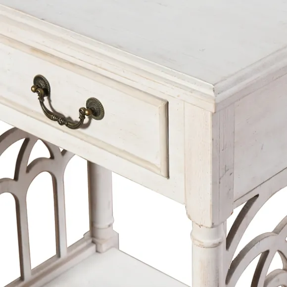 This White 1-Drawer Cathedral Sides Accent Table Features An Open Back And Ornate Side Design. You’Ll Love The Stylish And Rustic Addition It Makes To Your Home Storage.Table Measures 20L X 13W X 27H In.Crafted Of Wood And Wood Compositerustic White Finishfeatures One (1) Drawer And One (1) Lower Shelfcathedral Arch Sides Design And Bronze Metal Pull Handle Hardwareassembly Requirednot Intended For Commercial Usecare: Dust With A Soft, Dry Cloth.This Item Is Available At Kirklands.Com Only, Not Available In Stores. Please Note: This Item Cannot Be Shipped To Apo/Fpo Addresses.