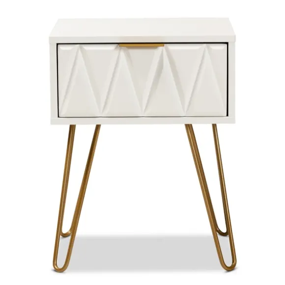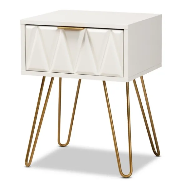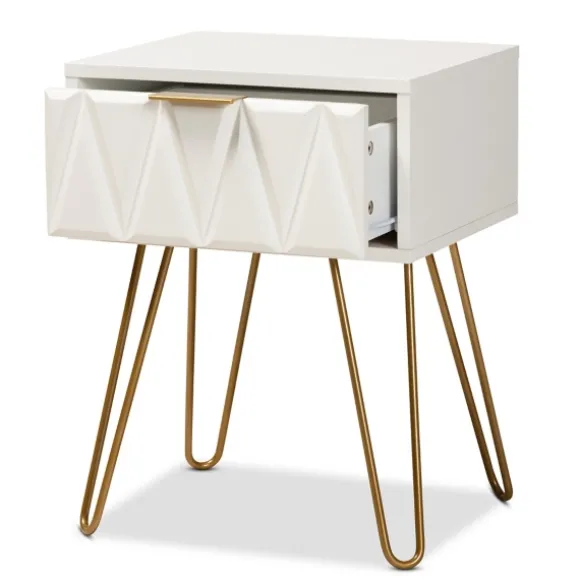 Update Any Room With The Modern Style Of This White And Gold Single Drawer Accent Table. Its Unique Design And Chic Finish Will Bring A Breath Of Fresh Air Into Your Home! You’Ll Love How It Energizes Your Space! Table Measures 16.5L X 13.4W X 21.7H In.Crafted Of Wood Composite And Steelgold Leg Finishwhite Tabletop Finishfeatures One (1) Drawerdrawer Features A Molded Geometric Facehairpin Leg Design.Assembly Requirednot Intended For Commercial Usecare: Dust With A Soft, Dry Cloth.This Item Is Available At Kirklands.Com Only, Not Available In Stores. Please Note: This Item Cannot Be Shipped To Apo/Fpo Addresses.Warning:This Product Can Expose You To Chemicals Including Formaldehyde And Phthalate, Which Is Known To The State Of California To Cause Cancer And Birth Defects Or Other Reproductive Harm.For More Information Go Towww.P65Warnings.Ca.Gov .