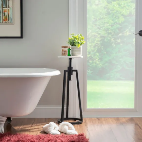 Add Some Chic Functionality To Your Industrial Space With Our Black And White Marble Adjustable Drink Table! This Table Is The Perfect Sidekick At Dinner Parties Or During Quiet Mornings Spent Sipping Coffee. Equipped With Stabilizing Foot Levelers And Changeable Height, This Piece Is Made To Rise To The Occasion No Matter The Setting. Accent Table Measures 30H X 10.5 In. In Diametercrafted Of Marble And Ironwhite Tabletop Finish With A Black Basefeatures An Adjustable Height Functionincludes Stabilizing Floor Levelersweigh Capacity: 25 Lbs.Assembly Requirednot Intended For Commercial Usecare: Wipe With A Soft, Damp Cloth. Not Safe For Outdoor Use.This Item Is Available At Kirklands.Com Only, Not Available In Stores. Please Note: This Item Cannot Be Shipped To Apo/Fpo Addresses.