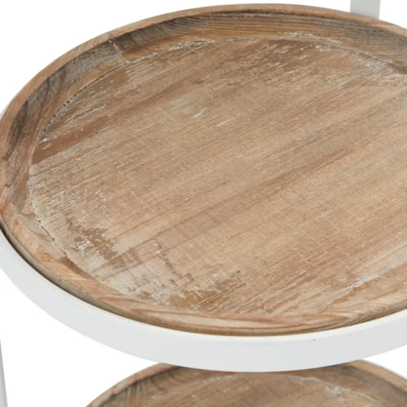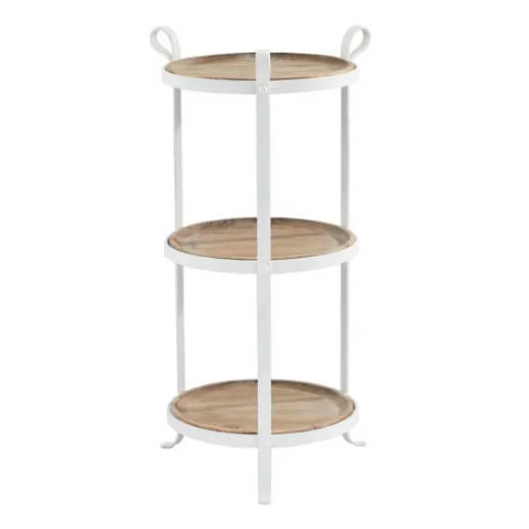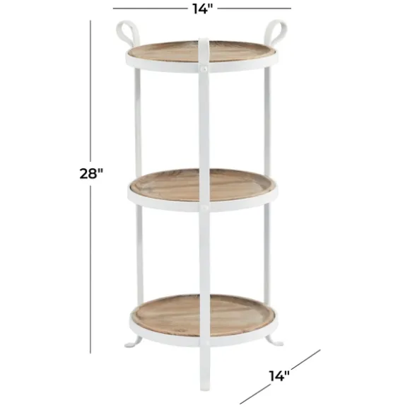 The Brown Wood And White Metal 3-Tier Side Table Will Organize Your Belongings With Farmhouse Charm! Plus, The Distressed, Two Tone Finish Will Add A Rustic Touch To Your Space. Table Measures 28H X 14 In. In Diametercrafted Of Wood And Metaldistressed White Metal Frame Finishnatural Brown Wood Shelf Finishthree-Tier Designround Shapeweight Capacity: 250 Lbs.No Assembly Requirednot Intended For Commercial Usecare: Dust With A Soft, Dry Cloth.This Item Is Available At Kirklands.Com Only, Not Available In Stores. Please Note: This Item Cannot Be Shipped To Apo/Fpo Addresses.