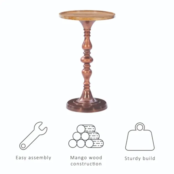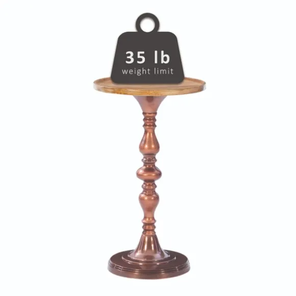 Add A Unique Touch To Your Reading Nook Or Living Room With Our Copper Plated Accent Table With Mango Wood Top! This Table Is The Perfect Place For Your Favorite Photos.Accent Table Measures 26H X 14.75 In. In Diametercrafted Of Metal And Mango Woodcopper Plated Metal Finishnatural Mango Wood Finish Tabletopbaluster Style Base Designweight: 9 Lbs.Weight Capacity: 35 Lbs.No Assembly Requirednot Intended For Commercial Usecare: Spot Clean Only. This Item Is Available At Kirklands.Com Only, Not Available In Stores. Please Note: This Item Cannot Be Shipped To Apo/Fpo Addresses.Warning:This Product Can Expose You To Chemicals Including Di-(2-Ethl Hexyl) Phthalate Which Is Known To The State Of California To Cause Cancer And Birth Defects Or Other Reproductive Harm.For More Information Go Towww.P65Warnings.Ca.Gov .