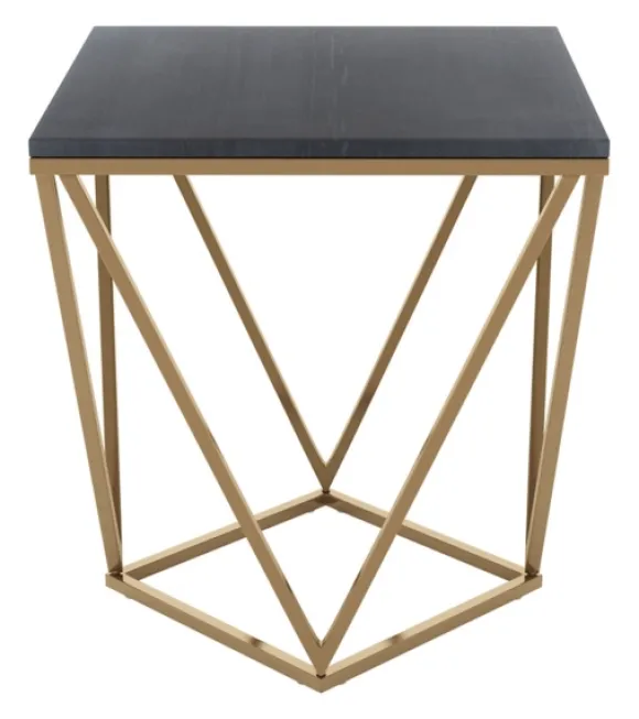 This Marble And Stainless Steel Accent Table Looks Beautiful Next To Any Chair Or Sofa. Its Stunning, Unique Design Will Go Perfectly With Any Modern Decor, While The Geometric Base Makes It One-Of-A-Kind. Table Measures 19.7L X 19.7W X 21.7H In.Crafted Of Metal And Marblegold Base Finishgray Marble Tabletop Finishsquare Tabletop Shapefeatures Geometric Base Designweight Capacity: 285 Lbs.Assembly Requirednot Intended For Commercial Usecare: Clean With Mild Detergent And Water.This Item Is Available At Kirklands.Com Only, Not Available In Stores. Please Note: This Item Cannot Be Shipped To Apo/Fpo Addresses.