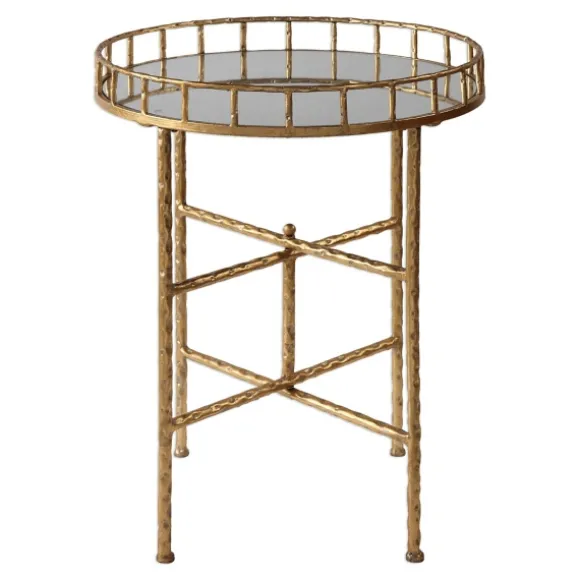 Picture This Gold Metal Mirrored Tray Accent Table Making A Statement In Your Living Room. With Its Stunning Finish And Unique Design, It Will Give Your Space A Striking, Golden Touch! You’Ll Love The Elegance It Brings To Your Home! Table Measures 19.5L X 19.5W X 25.75H In.Crafted Of Metal And Glassgold Leaf Finishcross Bar Base Designmirrored, Tray Styled Topround Shapeweight Capacity: 25 Lbs.Assembly Requirednot Intended For Commercial Usecare: Dust With A Soft, Dry Cloth.This Item Is Available At Kirklands.Com Only, Not Available In Stores. Please Note: This Item Cannot Be Shipped To Apo/Fpo Addresses.Warning:This Product Can Expose You To Chemicals Including Titanium Dioxide Which Is Known To The State Of California To Cause Cancer And Birth Defects Or Other Reproductive Harm.For More Information Go Towww.P65Warnings.Ca.Gov .