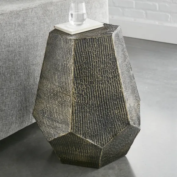 The Gray Hand-Stamped Iron Hexagon Accent Table Will Add Chic, Modern Character To Any Room In Your Home. Featuring Angular Lines And An Oil Rubbed Brass Finish, It Has A Unique, Dimensional Look That Softly Shimmers In The Light. Table Measures 18.5L X 18.5W X 21.5H In.Crafted Of Irongray Hand-Stamped Finishoil Rubbed Brass Finishhexagonal Tabletop Shapetapered, Geometric Shaped Baseweight Capacity: 35 Lbs.No Assembly Requirednot Intended For Commercial Usecare: Dust With A Soft, Dry Cloth.This Item Is Available At Kirklands.Com Only, Not Available In Stores. Please Note: This Item Cannot Be Shipped To Apo/Fpo Addresses.Warning:Cancer And Reproductive Harm – For More Information Go Towww.P65Warnings.Ca.Gov .