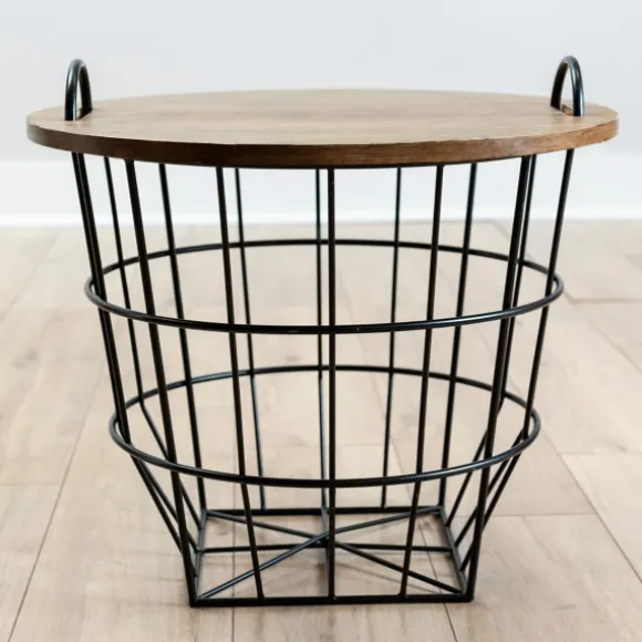 A Chic Storage Solution, Our Industrial Wire And Wood Side Basket Side Table Is Epitome Of Fashionable And Functional Design! With A Removable Tabletop And Wire Basket Interior, This Space Saver Has A Dual-Purpose Look That Makes It One-Of-A-Kind! Table Measures 20.5H In. And 23 In. In Diametercrafted Of Metal And Woodblack Wire Basket Finishnatural Finish Wooden Tabletopremovable Tabletopconvenient Carrying Handlesnot Intended For Commercial Use Care: Dust With A Soft, Dry Cloth. Avoid Using Chemical And Abrasive Cleaners As They May Damage The Finish. Contact Your Local Kirkland’S Store For Availability. Quantities And Selection May Vary By Location.