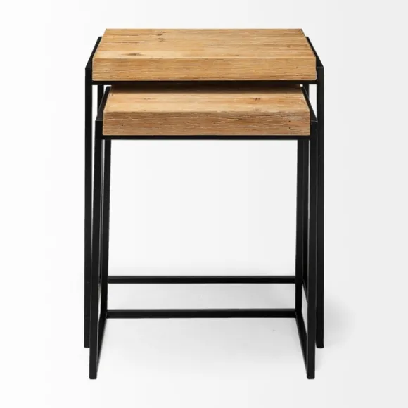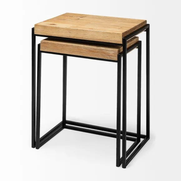 Bring A Fresh Look Into Your Living Room With These Light Wood Nesting Accent Tables. Featuring A Rustic, Understated Style, This Set Will Look Great Beside Your Sofa. You’Ll Love The Cohesive Look It Adds To Your Space! Set Includes Two (2) Tableslarge Table Measures 19.25L X 13W X 25H In.Small Table Measures 17L X 11W X 22H In.Crafted Of Metal And Fir Woodblack Base Finishnatural Wood Tabletop Finishnesting Featurenot Intended For Commercial Usecare: Dust With A Soft, Dry Cloth./Spot Clean Only.This Item Is Available At Kirklands.Com Only, Not Available In Stores. Please Note: This Item Cannot Be Shipped To Apo/Fpo Addresses.