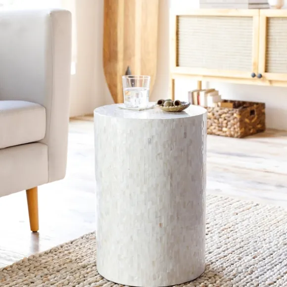 Add Something Special To Your Space With Our White Shell Cylinder Frame Accent Table. You’Ll Love The Unique Cylinder Sh…