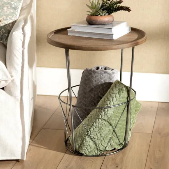 Kirkland’s Home Accent & End Tables-Side Table With Metal Wire Basket