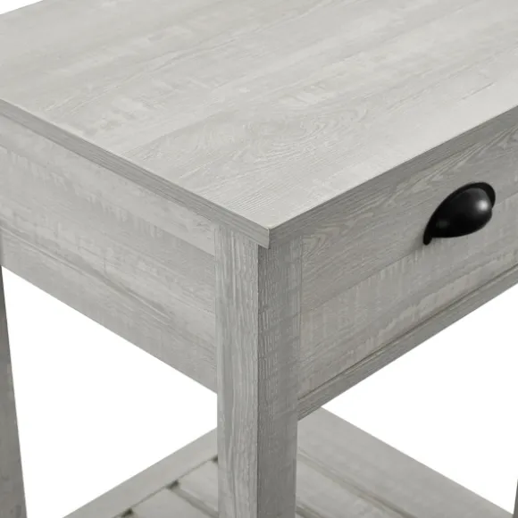 Bring A Modern Touch To Your Home With Our Stone Gray Single Drawer Accent Table. The Sleek, Eye-Catching Design Of This Table Looks Lovely In Any Space. Table Measures 17L X 17W X 24.25H In. Crafted Of Warp-Resistant Wood Composite, High-Quality Laminate, And Painted Metal Gray Finish Features One (1) Drawer And One (1) Lower Shelf Weight: 25.5 Lbs. Full Assembly Required Not Intended For Commercial Use Care: Dust With A Soft, Dry Cloth.This Item Is Available At Kirklands.Com Only, Not Available In Stores. Please Note: This Item Cannot Be Shipped To Apo/Fpo Addresses. Warning:Cancer And Reproductive Harm – For More Information Go Towww.P65Warnings.Ca.Gov .