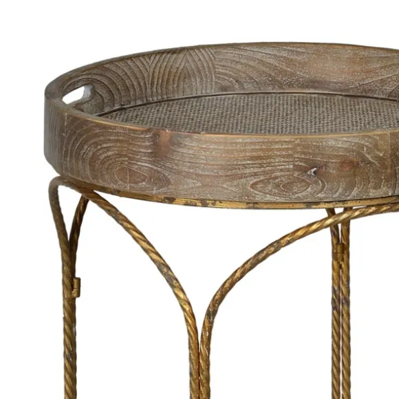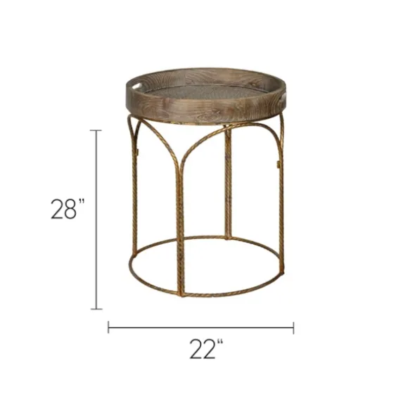 This Tray Top Wood And Gold Metal Accent Table Will Look Great Next To Any Chair Or Sofa. Its Blend Of Natural Wood And Gold Metal Gives It A Unique, Rustic Look. You’Ll Love The Charm It Adds To Your Home! Table Measures 28H X 22 In. In Diametercrafted Of Wood And Metalgold Base Finishnatural Tabletop Finishdecorative, Arched Metal Basetray Tabletopsome Assembly Requirednot Intended For Commercial Usecare: Dust With A Soft, Dry Cloth.This Item Is Available At Kirklands.Com Only, Not Available In Stores. Please Note: This Item Cannot Be Shipped To Apo/Fpo Addresses.Warning:Cancer And Reproductive Harm – For More Information Go Towww.P65Warnings.Ca.Gov .