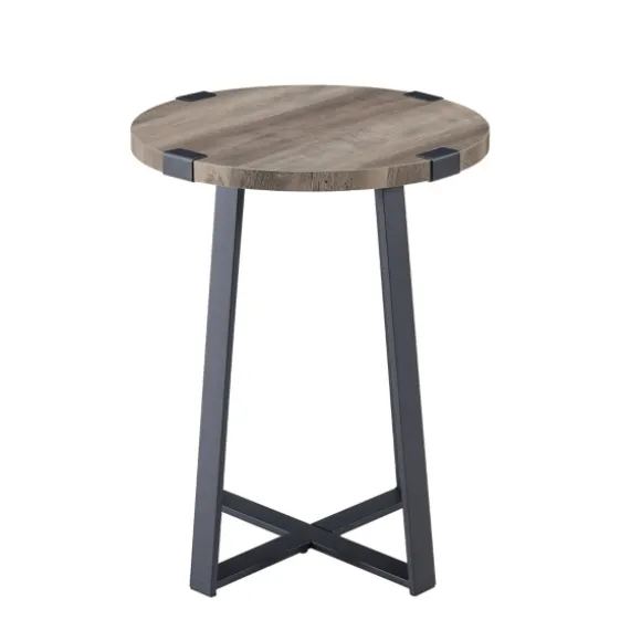 Add This Lovely Gray Urban Rustic Round Accent Table To Your Home Today! Your Accent Lamp And Potted Succulent Will Look Great Sitting On This Piece. This Is The Perfect Table For Especially Small Spaces.Accent Table Measures 22H X 18 In. In Diameter Crafted Of Warp-Resistant Wood Composite, Durable Laminate, And Powder-Coated Metal Gray Table Top Finish Black Base Finish Round Table Top Shape Natural, Wood Grain Details Durable, Laminate Table Top Four (4) Metal Legs Form The Cross Base Design Metal Legs Wrap Around Table Top Full Assembly Required Not Intended For Commercial Use Care: Dust With A Soft, Dry Cloth.This Item Is Available At Kirklands.Com Only, Not Available In Stores. Please Note: This Item Cannot Be Shipped To Apo/Fpo Addresses.