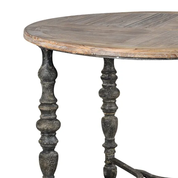 Kirkland’s Home Accent & End Tables-Weathered Wood Top Rustic Metal Base Accent Table