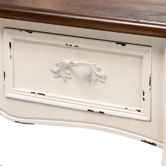 Get Ready In Style With This Antique White And Walnut 2-Pc. Vanity Set. Its Distressed Finish And Floral Molding Details…