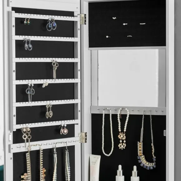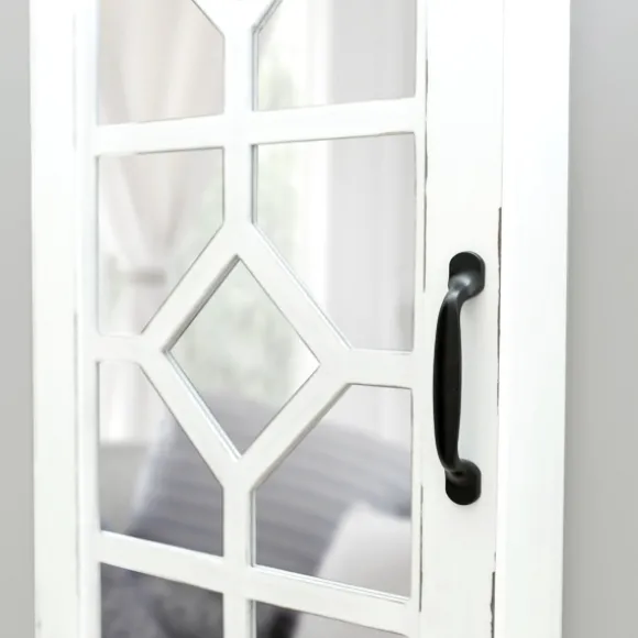 Update Your Typical Window Pane Design With Our Elegant White Eloise Armoire Jewelry Mirror. It Features A Distressed Finish With Unique Diamond Accents Within The Panes!Overall Mirror Measures 14L X 3.75W X 43H In.Crafted Of Glass And Wood Compositewhite Distressed Finish With White Wood Interiordiamond Window Pane Designfeatures A Hinged Door For Jewelry Storageaccommodates 84 Rings, 50 Pairs Of Earrings, And Contains 24 Hooks For Necklaces And Braceletsweight: 20 Lbs.Comes Ready To Wall Mount; No Additional Hanging Hardware Requiredcare: Dust With A Soft, Dry Cloth. To Clean Mirror, Spray A Small Amount Of Glass Cleaner Onto A Lint-Free Cloth And Wipe Clean.This Item Is Available At Kirklands.Com Only, Not Available In Stores. Please Note: This Item Cannot Be Shipped To Apo/Fpo Addresses.