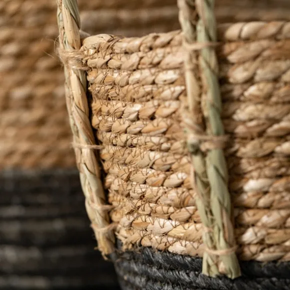 Keep Your Space Looking Chic And Clutter-Free With The Set Of Black And Natural Rattan Woven Baskets. The Two Tone Finis…