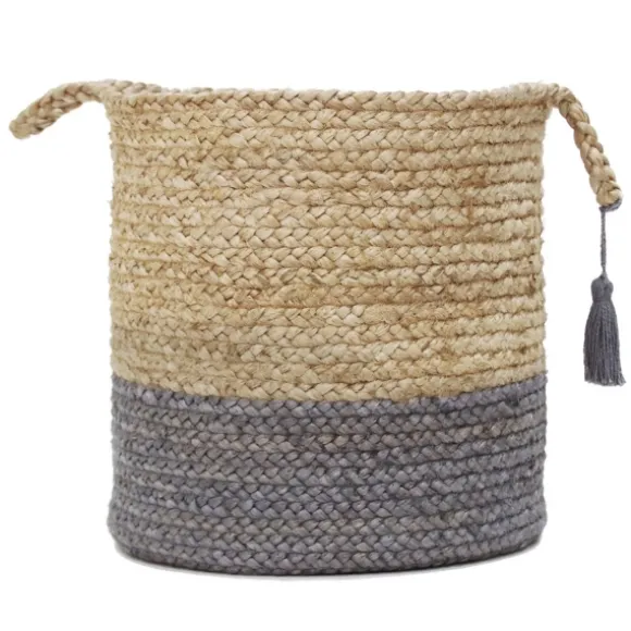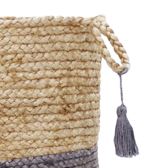 Kirkland’s Home Baskets & Boxes-Gray And Tan Woven Jute Basket With Tassel, 19 In.