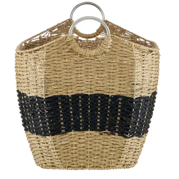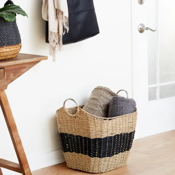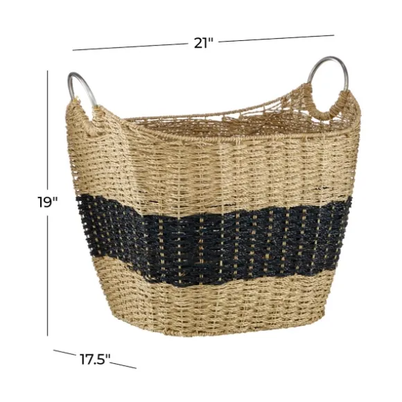 Organize Your Home With Style With This Striped Natural Seagrass Basket. It’S Perfect For Storing Blankets And Other Accessories In Your Living Room Or Bedroom! Basket Measures 21L X 17.5W X 19H In.Crafted Of Seagrass Striped Designfeatures Metal Ring Handleshues Of Tan And Blackfor Decorative Use Onlycare: Dust With A Soft, Dry Cloth.This Item Is Available At Kirklands.Com Only, Not Available In Stores. Please Note: This Item Cannot Be Shipped To Apo/Fpo Addresses.