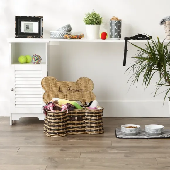 Keep Your Dog’S Space Looking Neat And Tidy In An Adorable Way! Made Out Of Durable, Easy-To-Clean Material, Our Striped Woven Bone Shaped Basket Is Sure To Make Tails Wag. Basket Measures 17.5L X 11W X 7.5H In.Crafted Of 100% Polypropylenestriped Brown And Tan Finishfeatures A Woven, Bone-Shaped Designaccented With A Faux-Leather Handleincludes A Metal Clasp Closureweight Capacity: 5 Lbs.Care: Dust With A Soft, Dry Cloth. Not Safe For Outdoor Use.This Item Is Available At Kirklands.Com Only, Not Available In Stores. Please Note: This Item Cannot Be Shipped To Apo/Fpo Addresses.