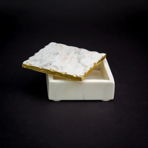 Add A Touch Of Luxury To Your Everyday Routine With This Beautiful White And Gold Marble Square Vanity Box! Perfect For Holding Bathroom Necessities, Jewelry, Or Even Office Supplies, This Box Is Stylish And Functional. You’Ll Love How It Looks Atop Your Dresser Or Nightstand. The Lid Fits Snugly On Top, Keeping Your Items Safe And Dust-Free. Plus The Glimmering Gold Accents Are Just The Right Amount Of Elegance. Box Measures 5L X 5W X 2H In.Crafted Of High-Quality Marblewhite Finish With Gold Accentsfeatures A Removable Lidcare: Wipe With A Soft, Damp Cloth. Not Safe For Outdoor Use.This Item Is Available At Kirklands.Com Only, Not Available In Stores. Please Note: This Item Cannot Be Shipped To Apo/Fpo Addresses.