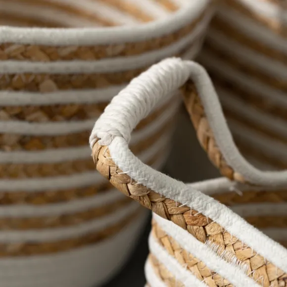 Kirkland’s Home Baskets & Boxes-White And Natural Braided Woven Baskets, Set Of 3
