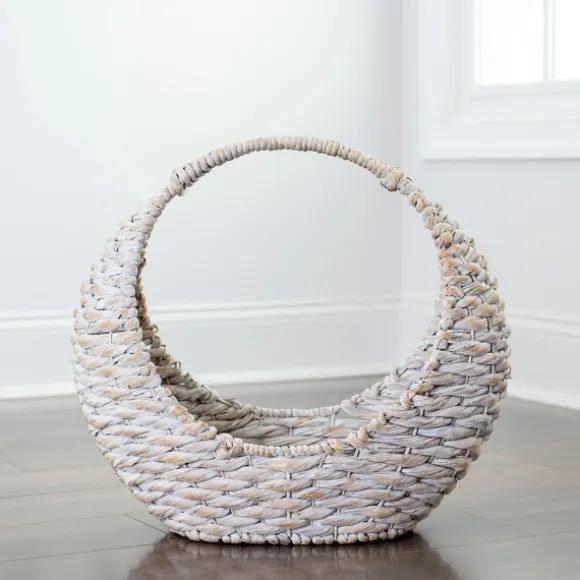 The White Woven Half Moon Basket Is A Simple, Natural Accent For Any Room In Your Home! Fill It With Some Firewood For A Rustic Look And Organized Feel.Basket Measures 24L X 10W X 23H In.Crafted Of Water Hyacinthround Crescent Shape With Handlewhite Finishweight: 4 Lbs.For Decorative Use Only Care: Dust With A Soft, Dry Cloth. Contact Your Local Kirkland’S Store For Availability. Quantities And Selection May Vary By Location.