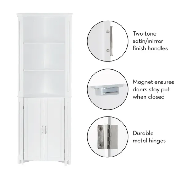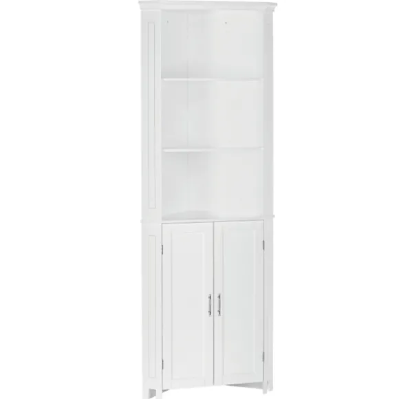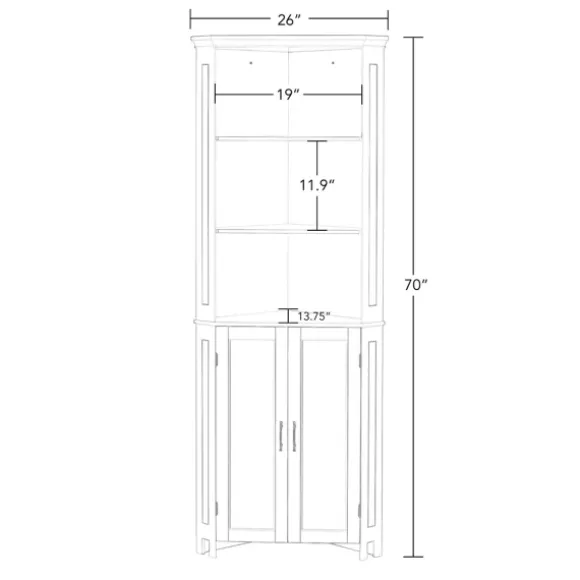 Utilize Every Corner Of Your Home With Our White Corner Shelf With Cabinet Doors! This Cabinet Also Makes A Charming Pantry For Smaller Kitchens.Cabinet Measures 26L X 18W X 70H In.Crafted Of Wood Compositewhite Wood Finishcorner Cabinet Designfeatures Two (1) Cabinets With Inner Shelves And Two (2) Upper Shelvescabinet Door Features Magnetic Closure And Silver Hardwarecomes With Wall Mounting Hardwareassembly Requirednot Intended For Commercial Usecare: Dust With A Soft, Dry Cloth. This Item Is Available At Kirklands.Com Only, Not Available In Stores. Please Note: This Item Cannot Be Shipped To Apo/Fpo Addresses.Warning:This Product Can Expose You To Chemicals Including Formaldehyde Which Is Known To The State Of California To Cause Cancer And Birth Defects Or Other Reproductive Harm.For More Information Go Towww.P65Warnings.Ca.Gov .