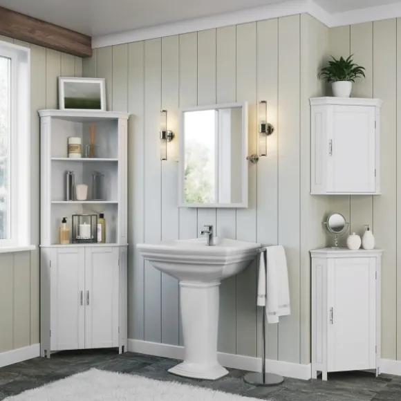 Kirkland’s Home Bathroom Furniture-Corner Shelf With Cabinet Doors