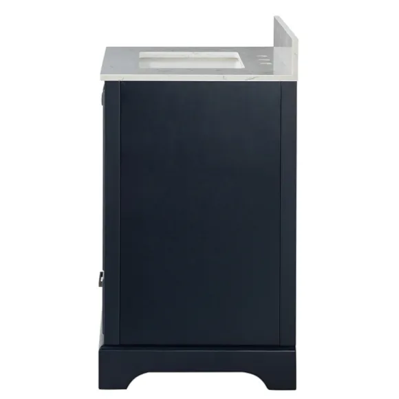 Redefine Your Bathroom Space In A Clean And Contemporary Way! Our Florence Navy Wood Backsplash Sink Vanity Features A Sleek Design With It’S Faux Marble Top And Gray Bronze Hardware. Plus, You’Ll Love Storing Linens And Other Bathroom Essentials In The Ample Storage Space. Vanity Measures 30L X 22W X 35.6H In.Crafted Of Wood, Ceramic, And Polystone Marblenavy Blue Finish With A White Faux Marble Top And A Glazed Sinkfeatures Two (2) Doors, One (1) Interior Shelf, And One (1) Draweraccented With Gray Bronze Metal Hardwareincludes A Backsplash To Protect Walls From Splashespre-Drilled With Three (3) Holes For Faucet Installationweight Capacity: 250 Lbs.Assembly Requirednot Intended For Commercial Usecare: Wipe With A Soft, Damp Cloth.This Item Is Available At Kirklands.Com Only, Not Available In Stores. Please Note: This Item Cannot Be Shipped To Apo/Fpo Addresses.