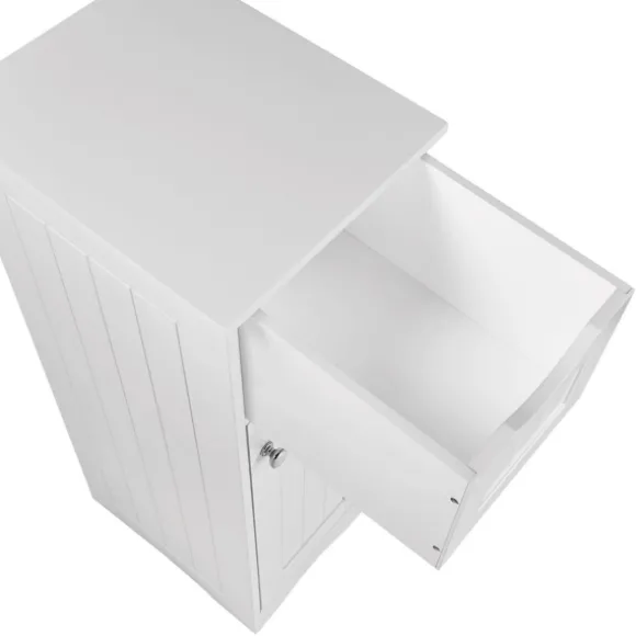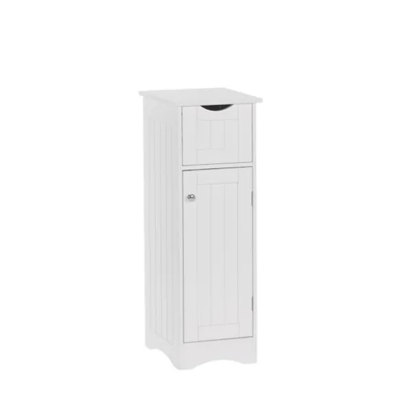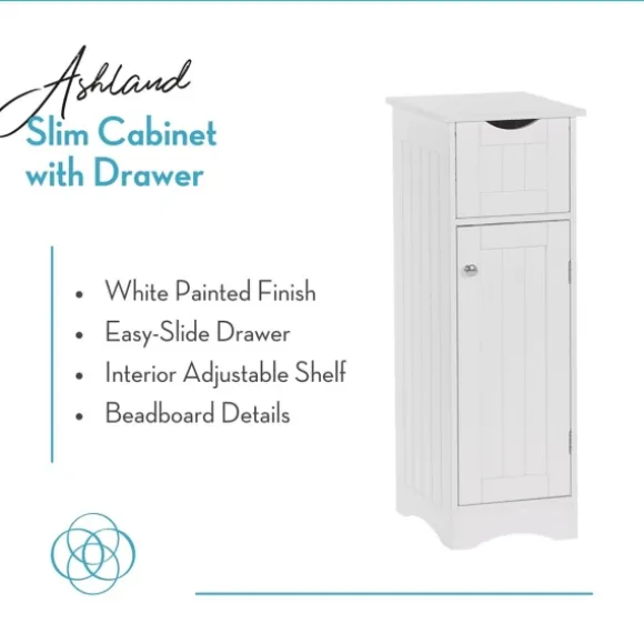 Tuck Our White Slim Single Door Cabinet With Drawer Into Any Tight Space Of Your Bathroom! Use The Top Drawer For Cosmetics And Accessories, And The Bottom Shelf For Cleaners And Towels! Cabinet Measures 13L X 11W X 32H In.Crafted Of Woodwhite Wood Finishfeatures A Single Doorbeadboard Designaccented With A Polished Silver Knobno-Handle, Sliding Top Drawerincludes One (1) Adjustable Interior Shelf, One (1) Fixed Interior Shelf, One (1) Open Top Shelf, And One (1) Drawersecures To The Wall With An Adjustable Anchor Bracket For Added Stabilityweight Capacity: 12 Lbs. Per Shelfdrawer Weight Capacity: 10 Lbs.Assembly Requirednot Intended For Commercial Usecare: Dust With A Soft, Dry Cloth.This Item Is Available At Kirklands.Com Only, Not Available In Stores. Please Note: This Item Cannot Be Shipped To Apo/Fpo Addresses.Warning:This Product Can Expose You To Chemicals Including Formaldehyde Which Is Known To The State Of California To Cause Cancer And Birth Defects Or Other Reproductive Harm.For More Information Go Towww.P65Warnings.Ca.Gov .