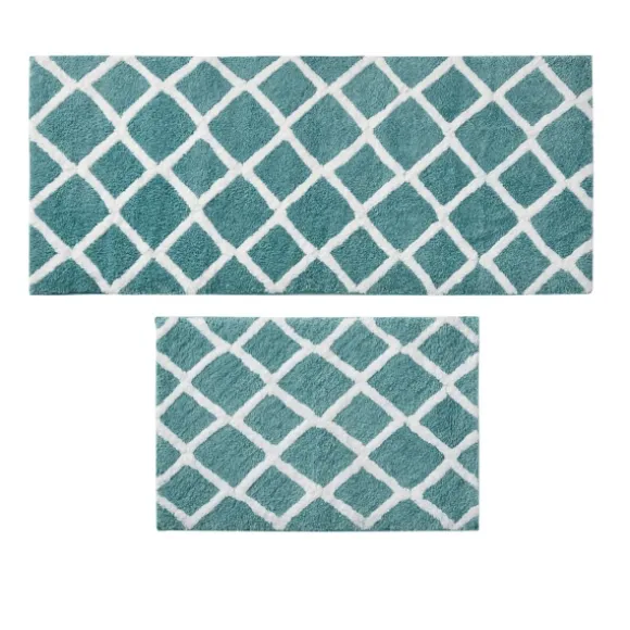 Bring Style And Comfort To Your Bathroom With This Aqua Geometric Pattern Reversible Bath Mat. You’Ll Love How Its Aqua And White Hues Look In Your Space! Bath Mat Measures 34L X 21W X 1.25H In.Crafted Of 100% Microfiberreversible High Pile Tufted Designhues Of Aqua And Whitefeatures A Geometric Pattern On Frontreverse Features A Classic Border Patternoeko-Tex Certifiedrug Pad Not Includedcare: Machine Wash Separately With Cold Water. Use Mild Detergent And Non-Chlorine Bleach When Needed. Tumble Dry On Low And Remove Promptly. Some Linting May Occur. Do Not Iron. Do Not Dry Clean.This Item Is Available At Kirklands.Com Only, Not Available In Stores. Please Note: This Item Cannot Be Shipped To Apo/Fpo Addresses.