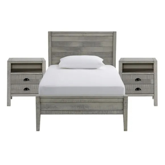 Add Some Uniformity And Style To Your Child’S Space! Our Rustic Gray Pine Panel 3-Pc. Twin Bedroom Set Is All You Need To Create The Bedroom Of His Dreams! You’Ll Both Love The Graywash Finish And The Chic Scoop Drawer Pulls. Set Includes One (1) Bed Frame And Two (2) Nightstandsbed Frame Measures 79L X 42W X 39H In.Each Nightstand Measures 22L X 17W X 25H In.Crafted Of Pine Wood With Metal Hardwaredistressed Graywash Finishfeatures A Rustic Panel Headboard And Footboard Designnightstands Accented With Black Scoop Drawer Pullsbed Accommodates A Standard Twin Mattress; Mattress Not Includednightstands Include Two (2) Drawers And One (1) Open Cubby Eachbed Weight Capacity: 400 Lbs.Nightstand Weight Capacity: 80 Lbs. Eachassembly Requirednot Intended For Commercial Usecare: Wipe With A Soft, Damp Cloth.This Item Is Available At Kirklands.Com Only, Not Available In Stores. Please Note: This Item Cannot Be Shipped To Apo/Fpo Addresses.