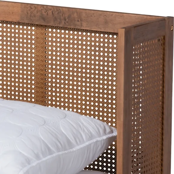 Kirkland’s Home Beds & Headboards-Walnut Wrap Around Rattan Queen Bed Frame