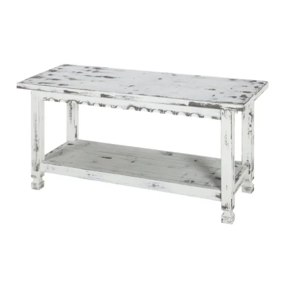 Charm Your Entry Way Decor With This Antiquated White Farmhouse Shelf Bench! Featuring A Convenient Bottom Shelf, This Bench Makes It Easy To Sit, Untie Your Laces, And Store Your Shoes. Bench Measures 36L X 14W X 18H In.; Seat Height 18H In. Crafted Of Wood Distressed White Finish Features A Bottom Shelf For Storage Weight Capacity: 300 Lbs. Some Assembly Required Not Intended For Commercial Use Care: Wipe With A Soft, Damp Cloth.This Item Is Available At Kirklands.Com Only, Not Available In Stores. Please Note: This Item Cannot Be Shipped To Apo/Fpo Addresses. Warning:This Product Can Expose You To Chemicals Including Formaldehyde Which Is Known To The State Of California To Cause Cancer And Birth Defects Or Other Reproductive Harm. For More Information Go Towww.P65Warnings.Ca.Gov .