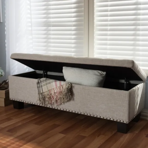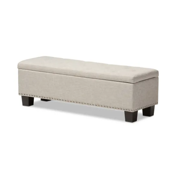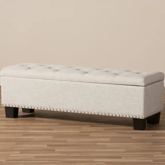 Fashion And Function Come Together Beautifully With Our Beige Button-Tufted Upholstered Storage Bench. You’Ll Love The Spacious Storage Compartment And Lovely Detailing. Bench Measures 52.17L X 16.73W X 17.32H In.; Seat Height Measures 17.32H In. Crafted With A Wooden Frame Black Leg Finish Upholstered In 100% Polyester Beige Fabric Features Button Tufted Detailing Features Nailhead Accents Features Storage Compartment Weight: 49.82 Lbs. Some Assembly Required Weight Capacity: 190 Lbs. Not Intended For Commercial Use Care: Spot Clean Only.This Item Is Available At Kirklands.Com Only, Not Available In Stores. Please Note: This Item Cannot Be Shipped To Apo/Fpo Addresses. Warning:Cancer And Reproductive Harm – For More Information Go Towww.P65Warnings.Ca.Gov .