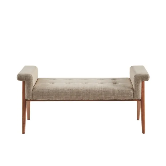 Add A Lovely New Seat To Your Home With This Tan Button Tufted Wood Bench. It Will Make The Perfect Addition To Your Living Room Or Entryway. Plus, Its Key Arm Design Gives It An Extra Touch Of Charm. Bench Measures 49.5L X 19.25W X 23H In.; Seat Measures 18.5H In.Crafted With A Wood Framebrown Leg Finishupholstered In Tan Polyester Blend Fabricfoam Fillbutton Tufted Seatkey Arm Designweight Capacity: 300 Lbs.Assembly Required; Tools Includednot Intended For Commercial Usecare: Spot Clean Only.This Item Is Available At Kirklands.Com Only, Not Available In Stores. Please Note: This Item Cannot Be Shipped To Apo/Fpo Addresses.