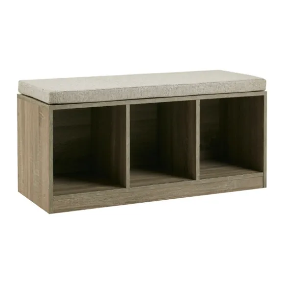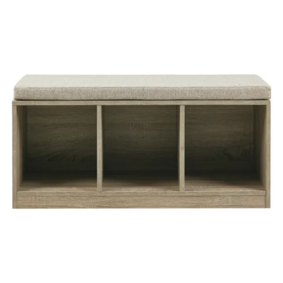 Add An Element Of Stylish Convenience To Your Space With This Cushioned Open Cubby Storage Bench! You’Ll Love Being Able To Store Baskets And Blankets Underneath. Bench Measures 38L X 15W X 18.5H In.Crafted With A Wood Composite Framecushion Upholstered In Polyester With A Foam Filllight Brown Finish With Gray Upholsteryincludes Three (3) Lower Cubbiesweight Capacity: 300 Lbs.Some Assembly Requirednot Intended For Commercial Usecare: Spot Clean Only. Not Safe For Outdoor Use.This Item Is Available At Kirklands.Com Only, Not Available In Stores. Please Note: This Item Cannot Be Shipped To Apo/Fpo Addresses.