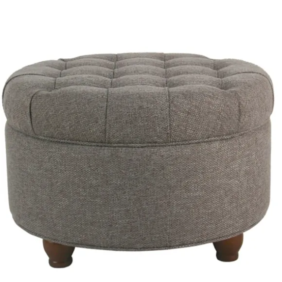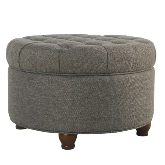 Bring Comfort To Your Living Room With Our Dark Gray Tufted Round Storage Ottoman. With A Removable Lid, This Storage Piece Helps Keep The Clutter Out Of Your House.Ottoman Seat Height Measures 15H In. And 25 In. In Diameter Crafted With A Sturdy, Wooden Frame Upholstered In A Dark Gray Fabric Walnut Finish Legs Top Features Tufted Button Accents Removable Top Reveals Interior Storage Weight Capacity: 250 Lbs. Not Intended For Commercial Use Care: Spot Clean Only As Needed.This Item Is Available At Kirklands.Com Only, Not Available In Stores. Please Note: This Item Cannot Be Shipped To Apo/Fpo Addresses.