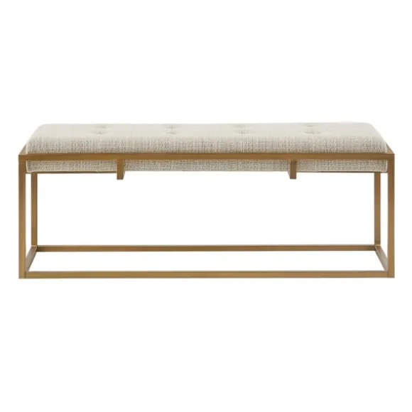 Add A Lovely New Seat To Your Home With This Tan Tufted Bronze Metal Bench. It Will Make The Perfect Addition To Your Living Room Or Entryway. Plus, Its Bronze Frame Gives It An Extra Touch Of Charm. Bench Measures 45L X 15W X 17.5H In.Crafted With A Metal And Wood Framebronze Frame Finishupholstered In Tan Polyester Blend Fabricfoam Fillbutton Tufted Seatweight Capacity: 300 Lbs.Assembly Required; Tool Includednot Intended For Commercial Usecare: Spot Clean Only.This Item Is Available At Kirklands.Com Only, Not Available In Stores. Please Note: This Item Cannot Be Shipped To Apo/Fpo Addresses.
