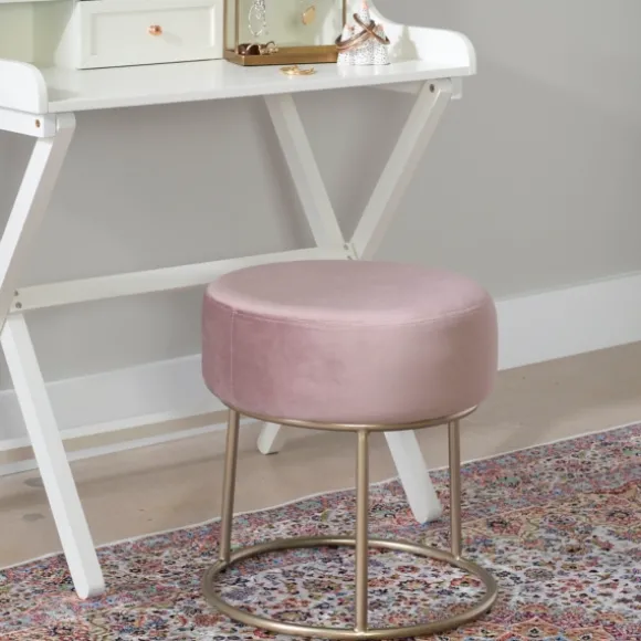 Decorate Your Home With This Gorgeous, Vintage-Inspired Velvet Vanity Stool. The Pink Velvet Upholstered Vanity Stool Will Add A Unique Twist To Your Home’S Decoration And Impress Any Guest. Stool Measures 16.9L X 16.9W X 18.9H In.; Seat Height Measures 18.25H In. Crafted With A Metal Frame And Velvet Upholstery Foam Fill Hues Of Pink Gold Finish Maximum Weight: 275 Lbs. No Assembly Required Not Intended For Commercial Use Care: Spot Clean Only.This Item Is Available At Kirklands.Com Only, Not Available In Stores. Please Note: This Item Cannot Be Shipped To Apo/Fpo Addresses.