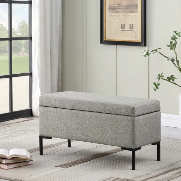 Fill Your Home With Extra Seating, Style, And Storage! With Hide-Away Storage Space And A Chic Modern Design, Gray Woven Polyester Storage Bench Has It All! Bench Measures 32L X 16.5W X 17.5H In.Crafted With A Metal Frameupholstered In 100% Polyester Fabric With A Foam Fillgray Finish With Matte Black Legsfeatures A Woven Textured Designhinged Bench Top Lifts To Reveal Storage Spaceweight Capacity: 250 Lbs.Some Assembly Requirednot Intended For Commercial Usecare: Spot Clean Only. Not Safe For Outdoor Use.This Item Is Available At Kirklands.Com Only, Not Available In Stores. Please Note: This Item Cannot Be Shipped To Apo/Fpo Addresses.