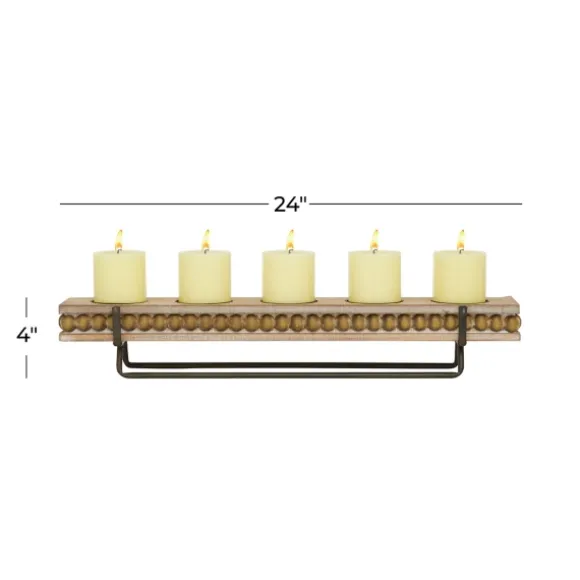 The Brown Beaded Wood And Metal Base Candle Holder Will Make Any Table Setting Glow With Natural Charm. Style It On Your Dining Table Or Console As A Centerpiece! Holder Measures 24L X 4.6W X 4H In.Crafted Of Wood And Metalrunner Stylenatural Brown Wood Finishblack Metal Stand Finishbeaded Wood Platform Designheld On Metal Standaccommodates Five (5) 3 In. Pillar Candles; Candles Sold Separatelycare: Dust With A Soft, Dry Cloth.This Item Is Available At Kirklands.Com Only, Not Available In Stores. Please Note: This Item Cannot Be Shipped To Apo/Fpo Addresses.Warning:Cancer And Reproductive Harm – For More Information Go Towww.P65Warnings.Ca.Gov .