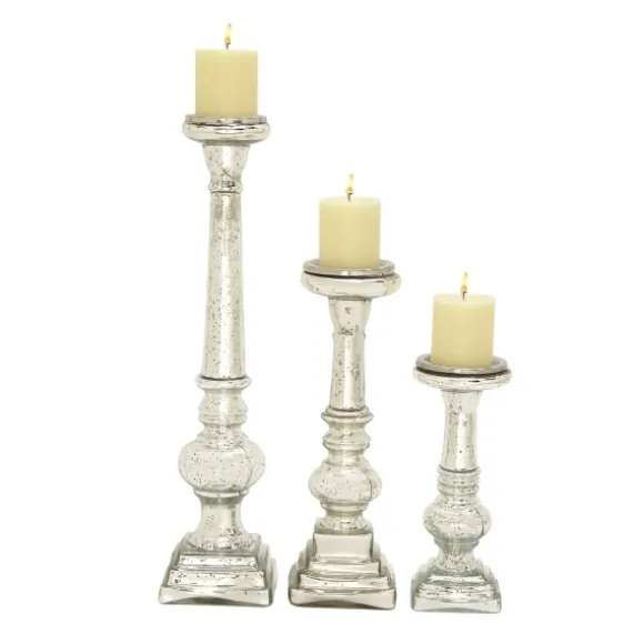Our Set Of Mercury Glass Silver Candle Holders Feature Reflective, Mirror-Like Holders That Catch The Light In Any Room. Add A Touch Of Elegance To Your Home. Set Includes Three (3) Pillar Holderslarge Holder Measures 5L X 4W X 21H In.Medium Holder Measures 5L X 4W X 15H In.Small Holder Measures 4L X 4W X 11H In.Handcrafted Of Mercury Glasslight Speckle Metallic Silver Finisheach Candle Holder Accommodates One (1) 3 In. Pillar Candle; Candles Sold Separatelycrafted In Indiadue To The Handmade Nature Of These Items, No Two Pieces Will Be Identicalcare: Dust With A Soft, Dry Cloth.This Item Is Available At Kirklands.Com Only, Not Available In Stores. Please Note: This Item Cannot Be Shipped To Apo/Fpo Addresses.