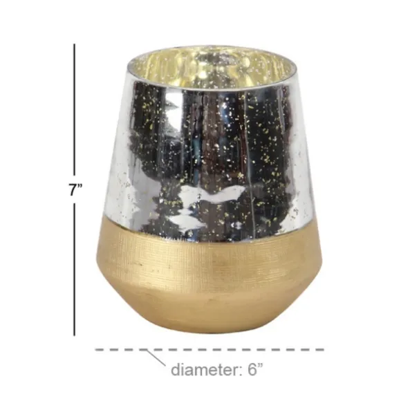 Give Any Space A Touch Of Glamour With This Silver And Gold Pillar Candle Holder. Paired With A Candle, Its Beautiful Style Will Make Your Home Shine! Holder Measures 7H X 6 In. In Diametercrafted Of Glass Round, Tapered Designsilver And Gold Finishspeckled Accentsaccommodates One (1) Of Pillar Candle; Candle Sold Separatelycare: Dust With A Soft, Dry Cloth.This Item Is Available At Kirklands.Com Only, Not Available In Stores. Please Note: This Item Cannot Be Shipped To Apo/Fpo Addresses.