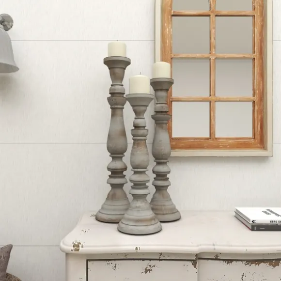 Kirkland’s Home Candle Holders-Slate Rustic Mango Wood 3-Pc. Candle Holder Set