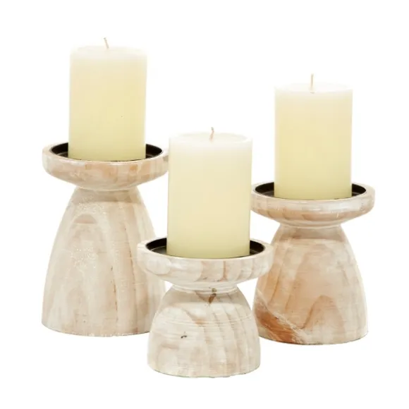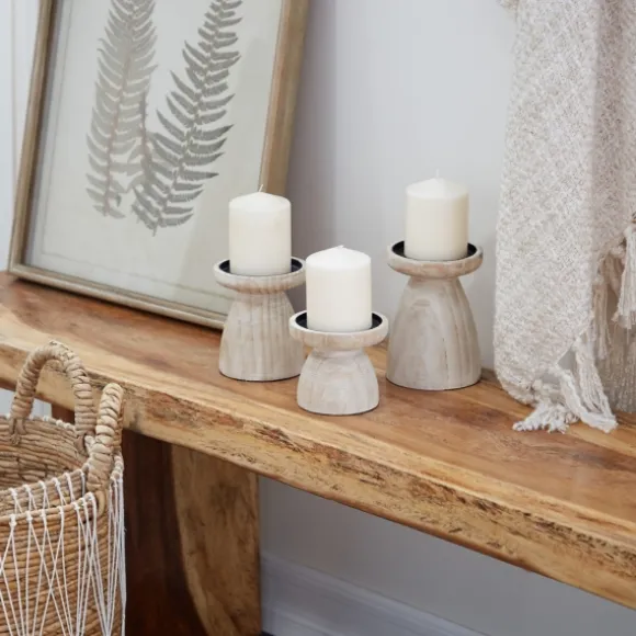 Kirkland’s Home Candle Holders-White Washed Wood Cone Candle Holders, Set Of 3