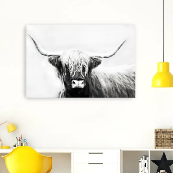 Make A Stylish Statement In Any Space With One Of Nature’S Finest Beings! Our Monochrome Longhorn Canvas Art Print Featu…