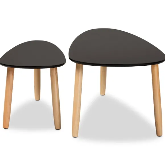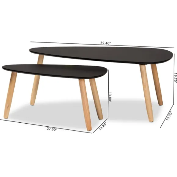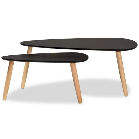 Complete The Lounge Space In Your Living Room With This Duo Of Black And Brown Wood Coffee Tables. With Their Softly Curved Shapes And Two Tone Finish, This Set Has A Distinctly Modern Look. Set Includes Two (2) Coffee Tableslarge Table Measures 39.4L X 15.7W X 19.7H In.Small Table Measures 27.6L X 13.8W X 13.8H In.Crafted Of Pine Woodtwo Tone Finishblack Tabletop Finishbrown Oak Finish On Legsangled Legscurved Tabletop Shapesweight: 16.8 Lbs.Assembly Requirednot Intended For Commercial Usecare: Dust With A Soft, Dry Cloth.This Item Is Available At Kirklands.Com Only, Not Available In Stores. Please Note: This Item Cannot Be Shipped To Apo/Fpo Addresses.